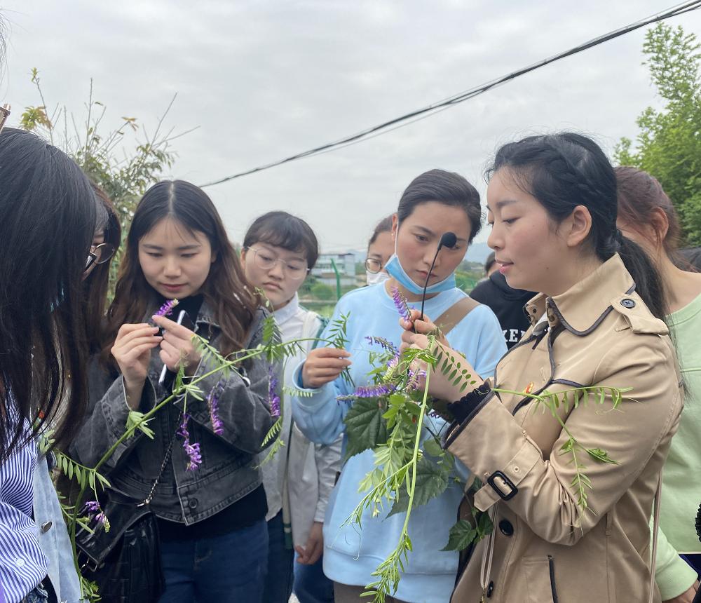 在前往大磨滩湿地公园途中,支部书记李运婷同志为同学们带来了一堂直观生动、别具一格的植物识别课。她选取常见并具代表性的植物为大家讲解种名及其详细特征。“这个是柑橘,其实柑橘是橘、柑、橙、金柑,柚、枳等的总称,是我们电影先生 柑橘研究所的研究对象,其花芳香,花、叶、果皮均是提取香精的优质原料……这个是广布野豌豆,豆科野豌豆属的植物,偶数羽状复叶,叶轴顶端为变态的叶卷须,总状花序粉紫色,荚果长圆形……这个是窃衣……”。