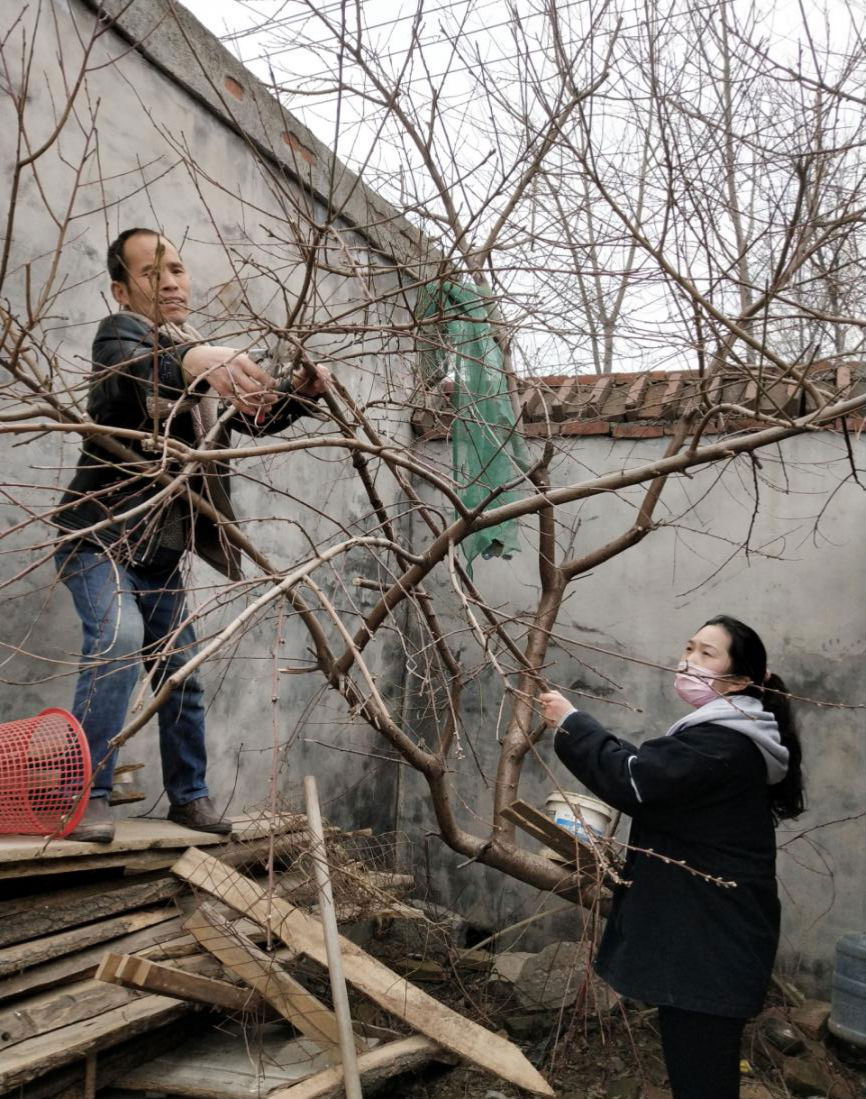 根据习近平总书记对全国春季农业生产工作作出的重要指示,在村子解封后,她立足专业特长,将理论与实践相结合,积极投入春耕生产,成为村里有名的农业技术指导员。她发挥专业优势,向村民传授修剪果树的要领:南疏北密、去除徒长枝、保留结果枝、梨树要拉枝,并现场教学,对果树进行专业修剪。针对村民对农药认识的片面性,她办起了农药知识大讲堂,耐心讲授农药有效成分及作用原理等,细致解释农药浓度配比,并为村民配比药剂、喷洒农药。村民们对她赞不绝口,“如梦这妮儿,能干得很!能耐住性子,这假期回来是给俺们传经送宝来了!”
