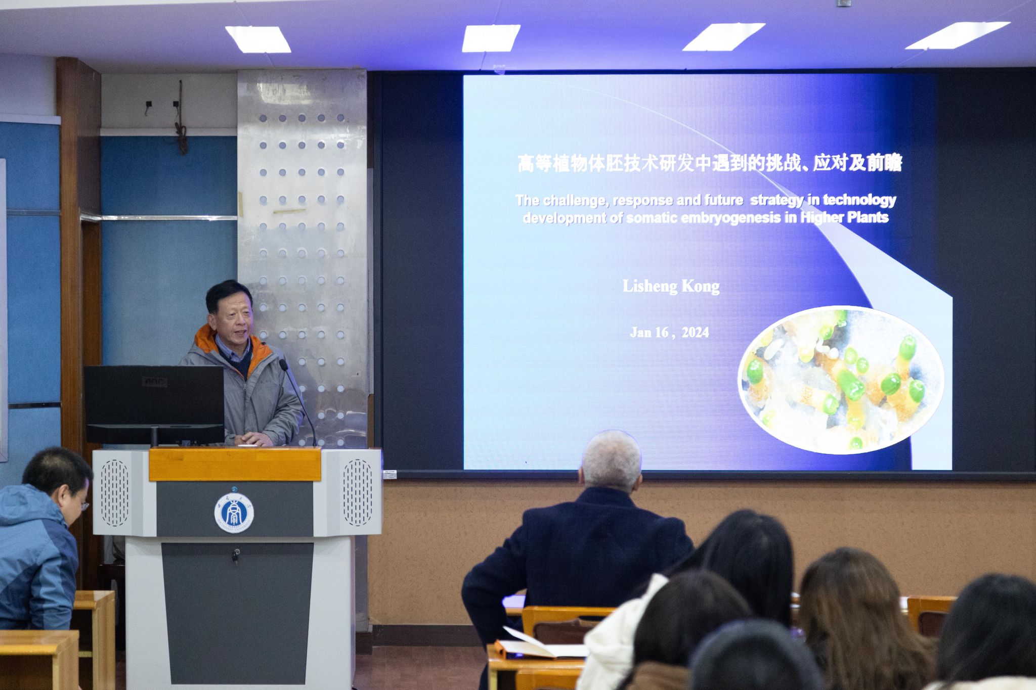 开展题为《植物体细胞胚胎发生及高效繁育技术》的学术报告。学院宋洪元院长、园艺系教师和研究生参加了本次学术讲座。本次报告重点梳理了我国主要园艺植物,特别是木本植物在体细胞胚胎发生研究领域的进展,并对未来研究方向提出了设想和目标。