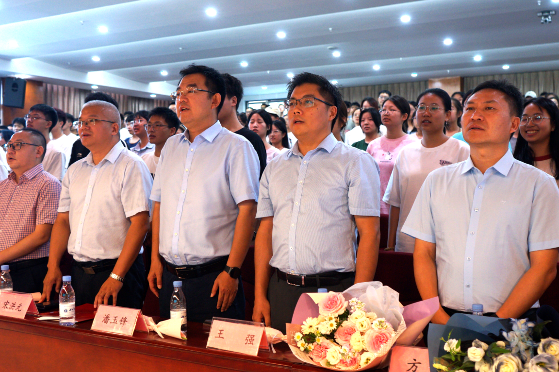 见面会在庄严的国歌声中拉开序幕,全体师生起立、齐唱国歌,共同唱响对祖国的热爱与敬意。这不仅是对新生进行爱国主义教育的重要一课,也是激励他们在未来学习生活中不断奋斗的精神力量。