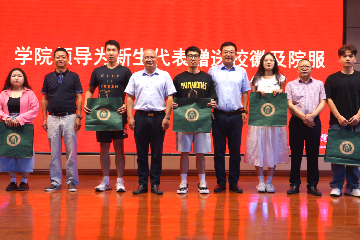 学院领导为新生代表赠送校徽与院服,这不仅是对新生的美好祝愿,也预示着其成为了一名真正的艺林学子。校徽象征着学校的荣誉与责任,院服则代表着学院的温暖与关怀,每一位艺林学子都深知这是一份荣誉,更是一份沉甸甸的责任。