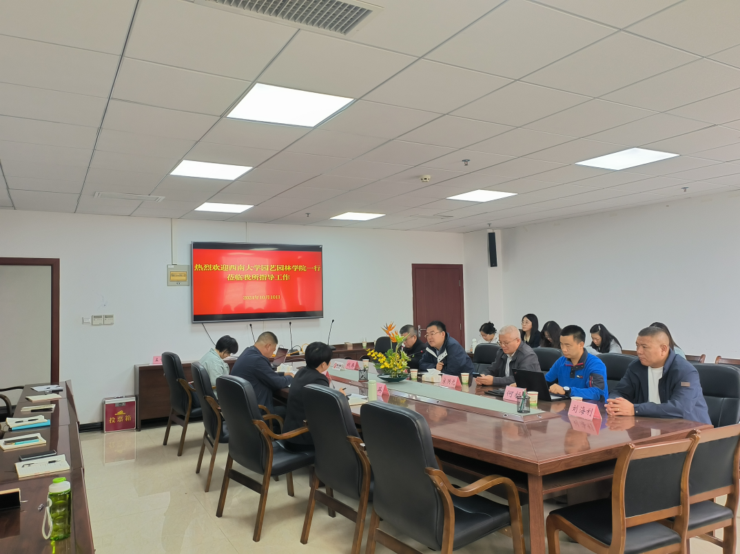 10月8日至10日,学院党委书记潘玉锋、院长宋洪元带队先后走访了云南农业大学园林园艺学院、贵州大学农学院和贵州省农业科学院园艺研究所,学院教学实验农场场长钱春,园艺系副主任何桥,园艺系刘海利参加交流调研。此次走访旨在联合云南农业大学、贵州大学、四川农业大学的兄弟学院,共同举办西南高等院校园艺技能大赛,同时推进与兄弟高校、科研院所在党的建设、人才引进、科学研究、校友联络等方面的交流合作。