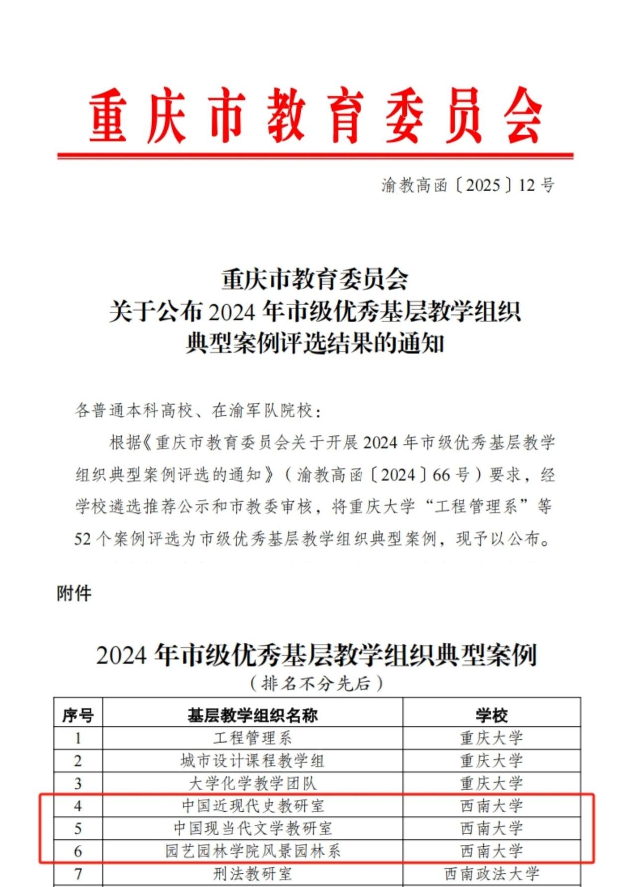 重庆市教育委员会近期发布《关于公布 2024 年市级优秀基层教学组织典型案例评选结果的通知》,电影先生