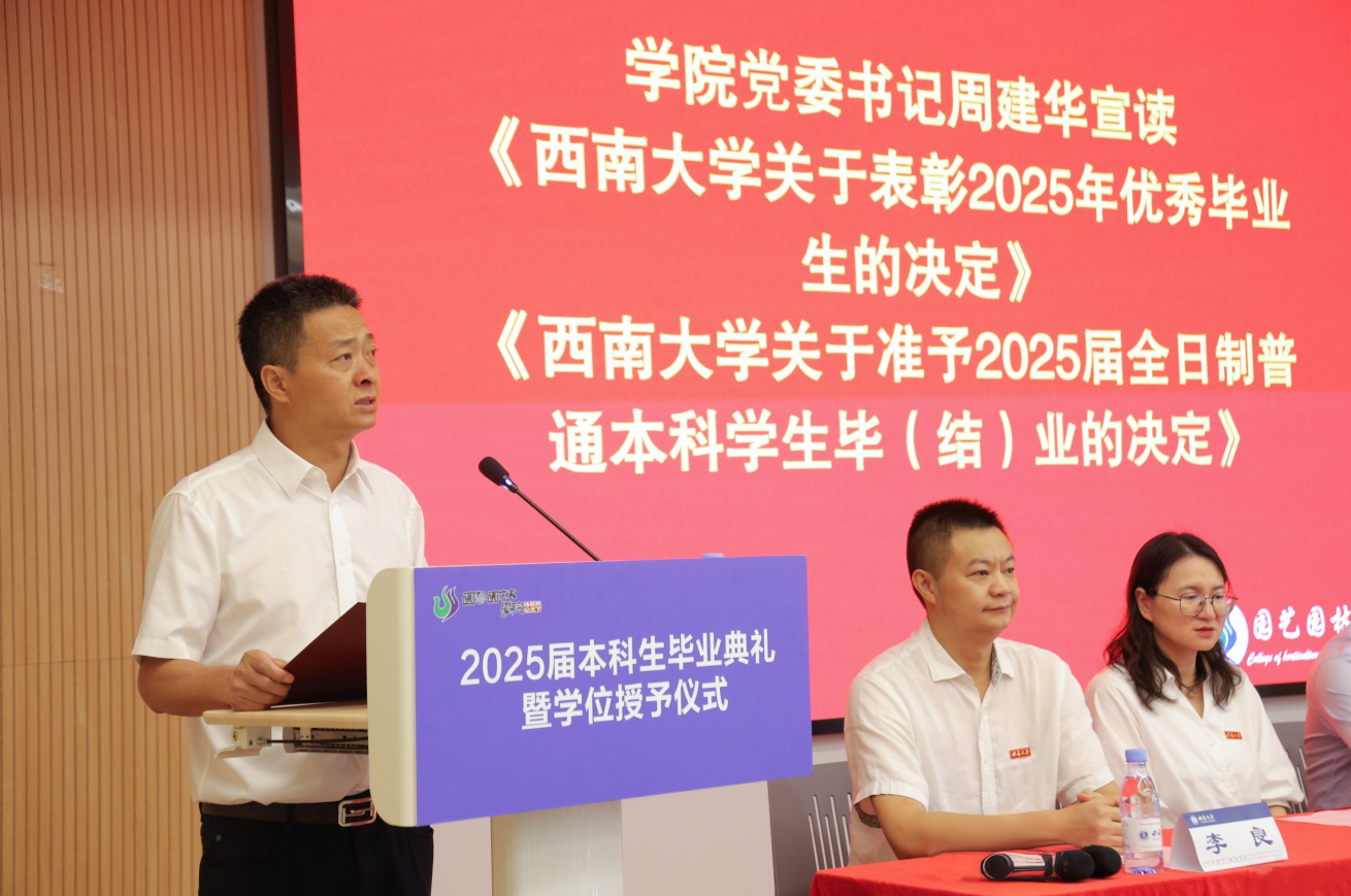 校歌》的旋律响起,在“缙云苍苍,嘉陵泱……”的歌声里,愿2025届本科生毕业生如移植的苗木,在祖国广袤的土地上扎根生长——或深耕园艺科研,让良种遍植荒野;或投身乡村振兴,用绿意装点家园;或传承文化薪火,以匠心续写文明。此去山高水长,惟愿“培土四载”的积淀,终成“绿满山河”的华章!至此,电影先生