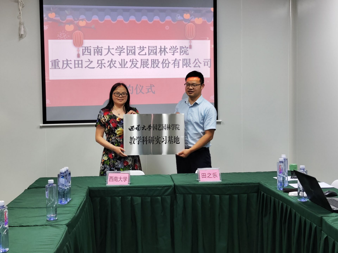 6月15日,学院教学科研实习基地和就业见习基地签约授牌仪式在重庆田之乐农业发展股份有限公司总部会议室举行。学院党委副书记李小红、园艺系主任潘宇,带队老师刘海利、李勤菲及6名实习学生一行参加了本次会议。田之乐公司总经理李桂林,田之乐综合事务部周湘出席会议和签约仪式。