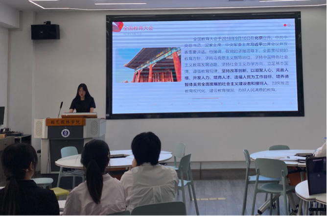 第二部分,视频学习。与会党员集中观看《跟随总书记的脚步到人大校园听一堂立德树人的好课》视频,习近平总书记强调,要把思政课办得有意义、有意思、有意境,把思政小课堂同社会大课堂结合起来,教育引导学生立鸿鹄志,做奋斗者。这为我们讲好“大思政课”提供了重要的方向指引。
