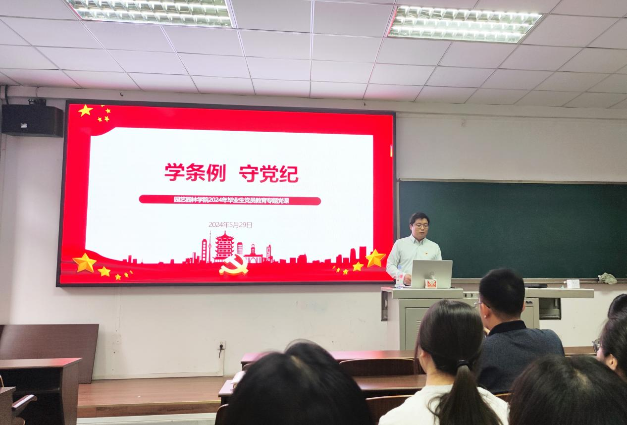 王强讲授纪律党课《学条例 守党纪》,深入解读了《中国共产党纪律处分条例》的主要内容,强调了严守党的纪律的重要性,结合案例分析,就如何严格执行和维护党的纪律提出要求,号召毕业生党员做到认真学纪、准确知纪、自觉明纪、严格守纪,在新的工作岗位上知戒惧、存敬畏、守底线。