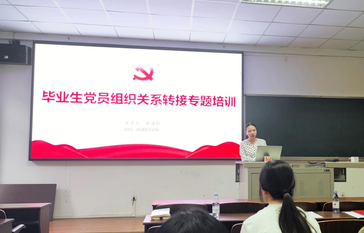 组织员张靖悦作毕业生党员组织关系转接专题培训,明确党组织关系转接的重要性、转接流程和安排,强化毕业生党员组织纪律观念。与会人员集中观看廉洁警示教育片《永远吹冲锋号》第一集《第二个答案》。
