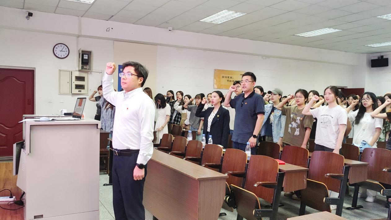 为扎实推进党纪学习教育,以党建引领毕业季,2024年5月29日,学院以“学纪守纪铸牢忠诚品格,知行合一勇做青年先锋”为主题召开2024届毕业生党员教育大会。学院党委书记潘玉锋,党委副书记、纪委书记王强,专职组织员张靖悦出席会议,全体2024届毕业生党员、学生党支部支委代表参会。会议由王强主持。