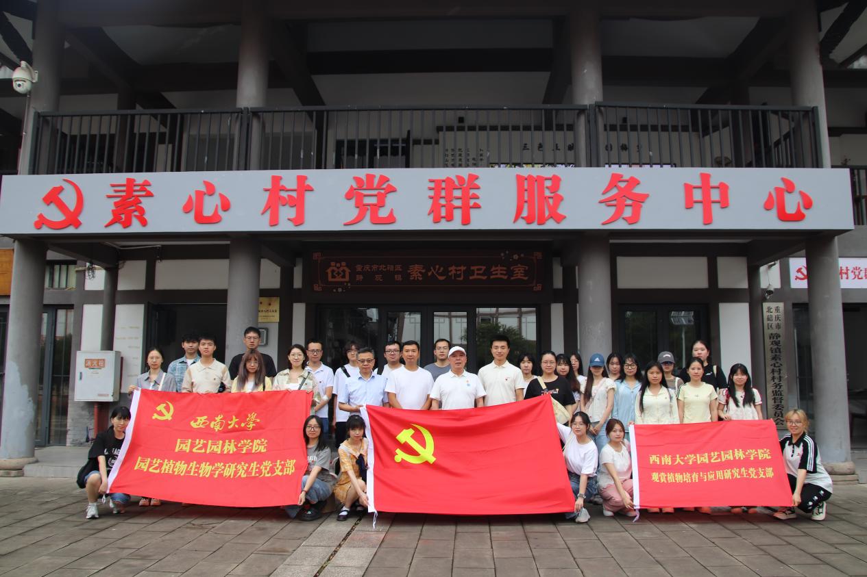 为深入贯彻落实党的二十大精神,推动党建与科研深度融合,以高质量党建引领乡村振兴,6月18日,学院观赏植物培育与应用研究生党支部、园艺植物生物学研究生党支部、风景园林本科生党支部联合重庆市北碚区静观镇产业发展中心共同开展“梅香赋能乡村,党旗引领振兴”主题党日活动。此次活动聚焦蜡梅产业振兴,通过座谈交流、实地调研、实践操作等形式,探索“党建引领+产学研用”协同发展的乡村振兴新路径。