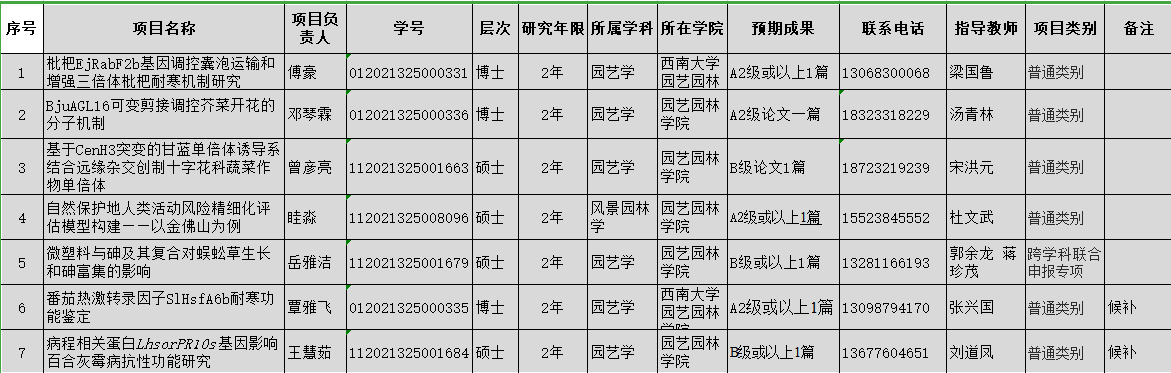 根据研究生院《关于申报2022年重庆市研究生科研创新项目的通知》,经个人申报,专家评审,现将推荐结果公示如下: