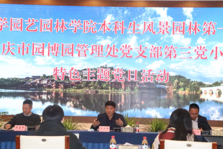 本科生风景园林第一党支部与重庆市园博园管理处党支部第三党小组联合举办的特色主题党日活动在重庆市园博园顺利开展,活动以“学党史、践承诺、见行动”为主题,本科生风景园林第一党支部、重庆园博园党支部第三党小组全体党员参会,园博园党务干部及党支部书记王吉华、园博园副主任范庭兵出席。