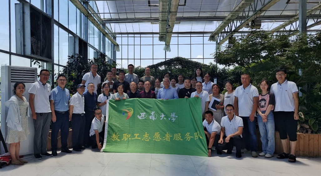 2023年7月4日,学院工会牵头,联合学院团委与学生志愿者,赴重庆市渝东南农业科学院开展志愿者“三下乡”活动。本次活动旨在发挥学院专业优势,有针对性地开展志愿服务活动,首先,渝东南农科院饶玲和李文平老师带领大家一起参观了重庆市涪陵区国家现代农业产业园和研学教育实践基地,讨论了立体栽培、品种搭配和病虫害防治等工作。